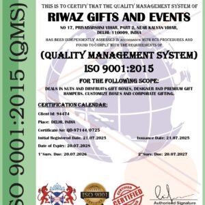 Riwaz Luxury Square Design Dry Fruit Gift Box | Premium Hamper with 6 Airtight Jars of Almonds, Cashews, Pistachios, Walnuts, Raisins & Khumani | Ideal for Diwali, Corporate & Festive Gifting (650g)
