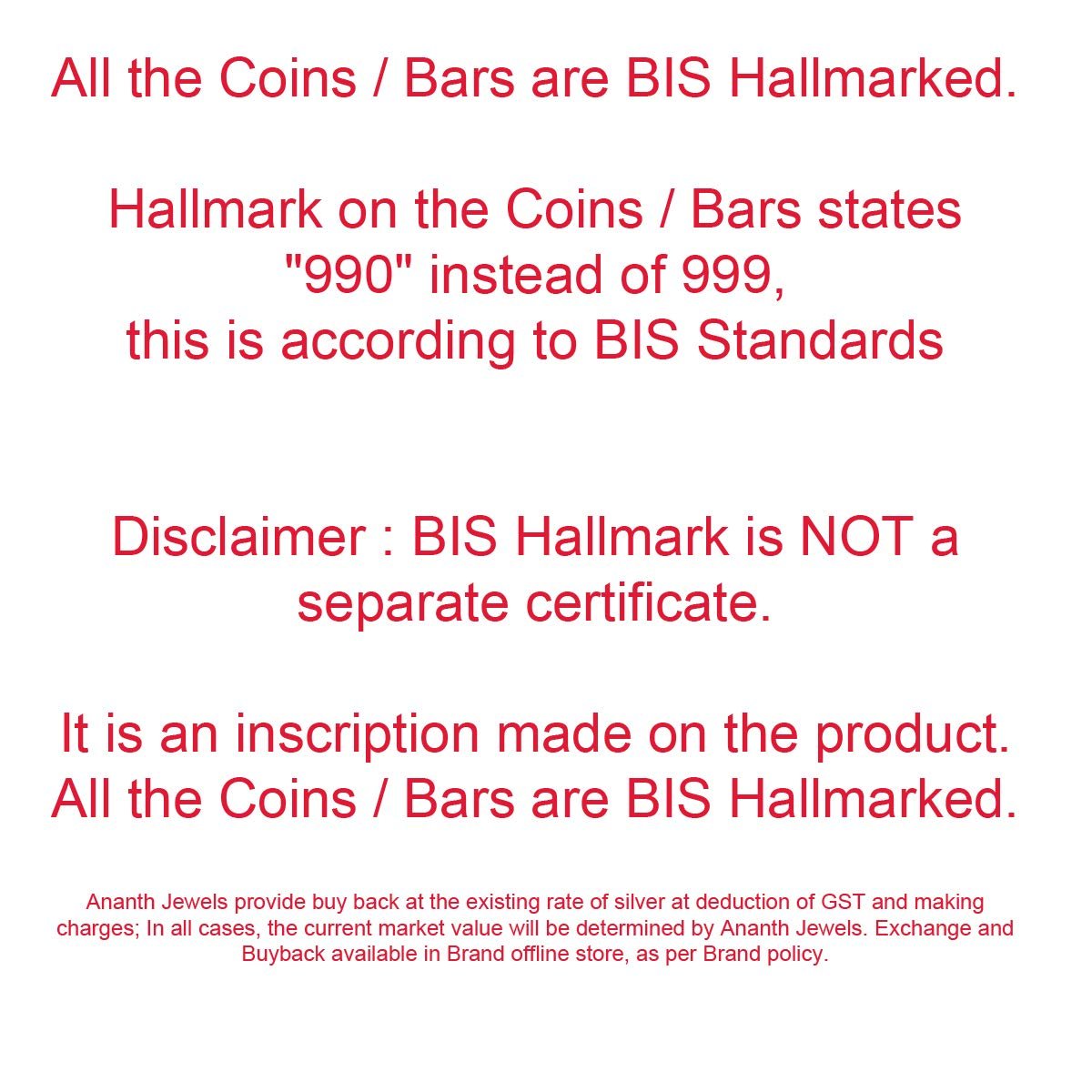 - BIS Hallmark is NOT a separate certificate. It is an inscription made on the product