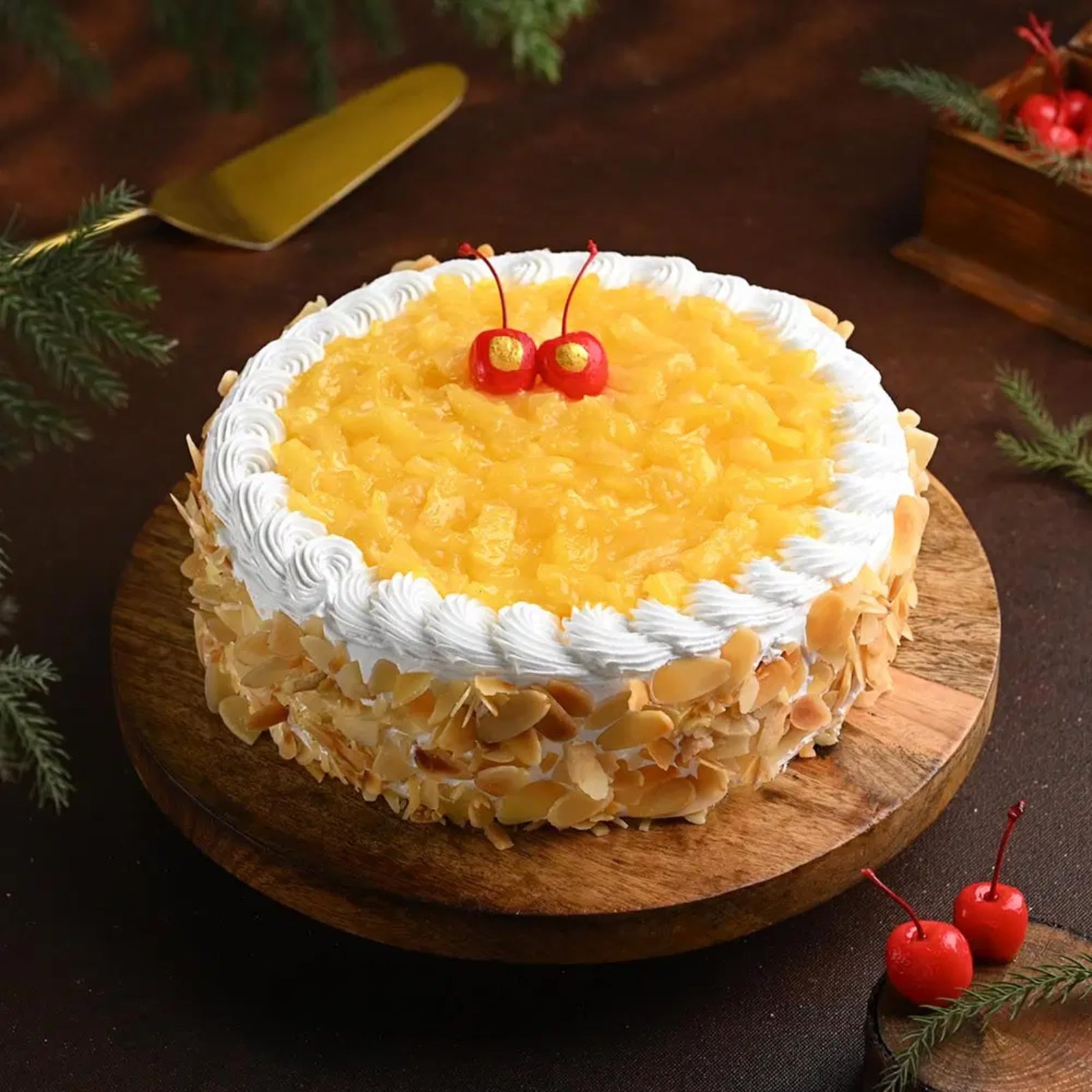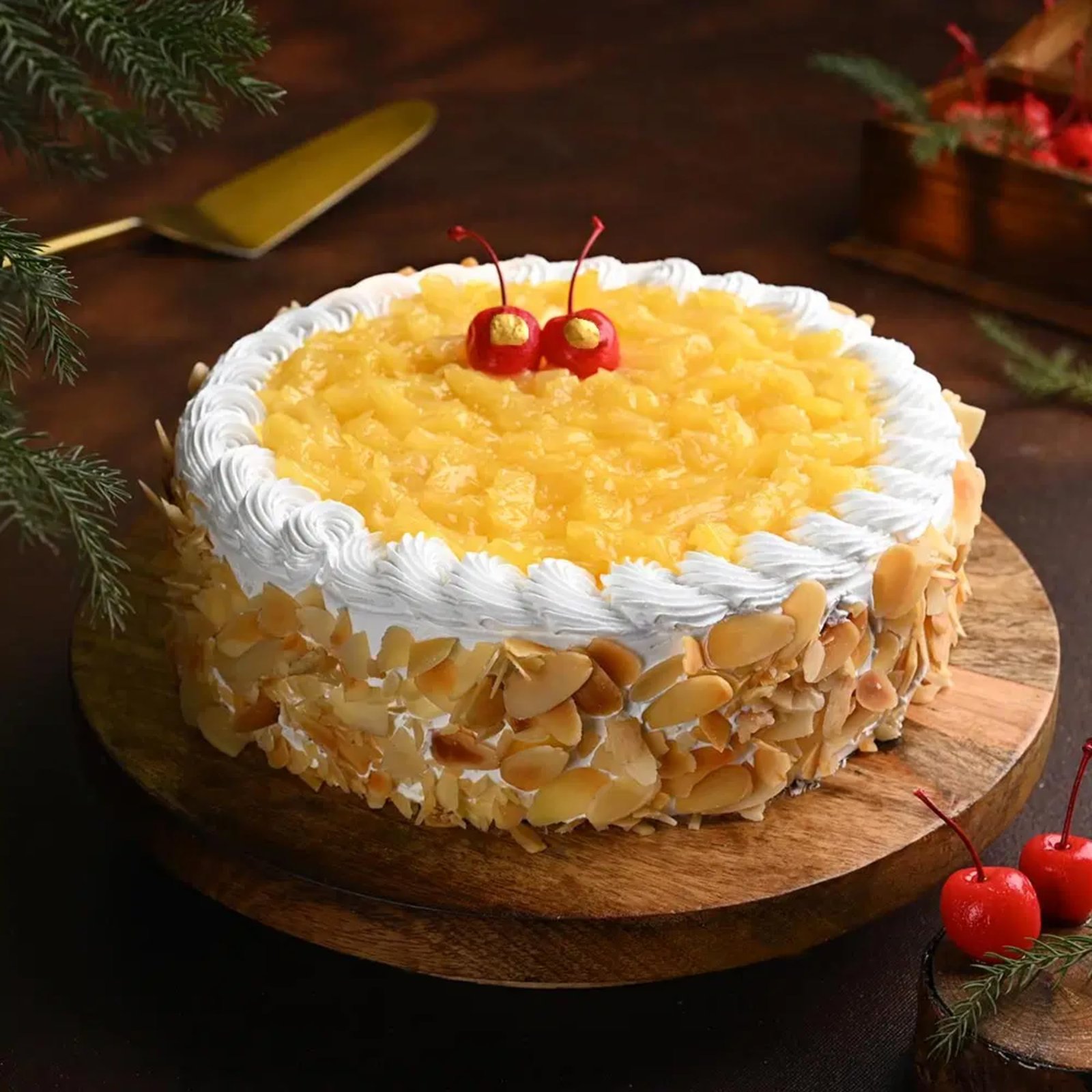 Details: Indulge in the delightful taste of Bakingo’s Pineapple Cake, crafted with the finest ingredients to make your special moments even sweeter. This heavenly cake features a silky smooth whipped cream topping, fresh pineapple chunks, and a soft, moist sponge that melts in your mouth. Garnished with juicy cherries, this cake is a perfect choice for celebrations like birthdays, anniversaries, Valentine’s Day, Mother’s Day, and Father’s Day. Whether you’re treating yourself or surprising a loved one, this delightful dessert is sure to impress!