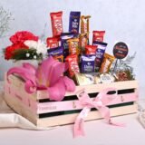 Details: Celebrate love in its purest form with the FlowerAura Love Special Hamper, a delightful ensemble designed to convey heartfelt affection and sweet indulgence. This exquisite hamper features a captivating mix of four fresh live flowers, each symbolizing love, joy, and admiration. Nestled alongside the vibrant blooms are nineteen unique chocolates, meticulously selected to tantalize the taste buds and delight the senses. Presented in an elegant basket, this thoughtfully curated hamper is the perfect gesture for expressing love and appreciation on Valentine’s Day, birthdays, anniversaries, or Mother’s Day. Whether you’re surprising your significant other, celebrating a special milestone, or showering your mom with affection, the FlowerAura Love Special Hamper is sure to captivate and enchant your loved ones with its charm and sweetness.