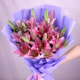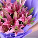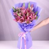 - FLOWER COUNT & COLOR 10 fresh live pink lilies arranged in a full and elegant bouquet style