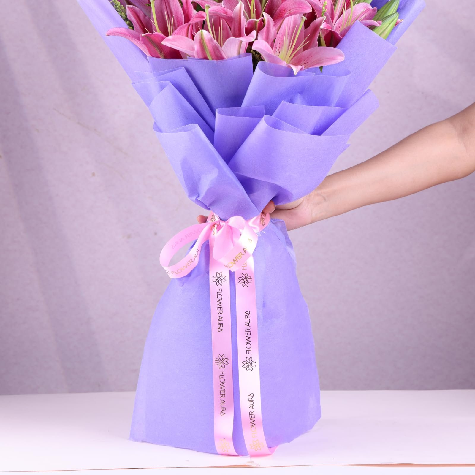 - PURPLE NON WOVEN PAPER WRAP High-quality non woven paper wrapping enhances presentation and adds refined visual contrast