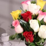 • PREMIUM FRESH MIX ROSES ARRANGEMENT IN GLASS VASE features 12 fresh live mixed roses selected for vibrant color variations, natural freshness, and full bloom, creating a luxurious floral bouquet perfect for romantic and special occasions.