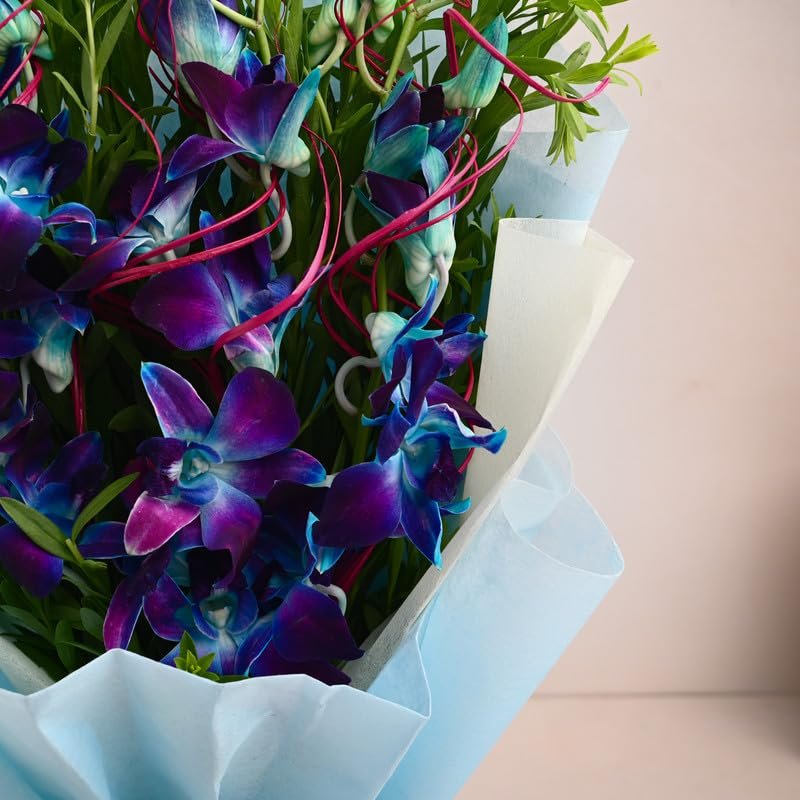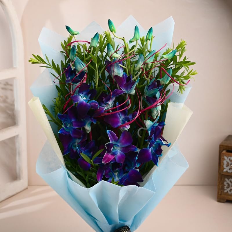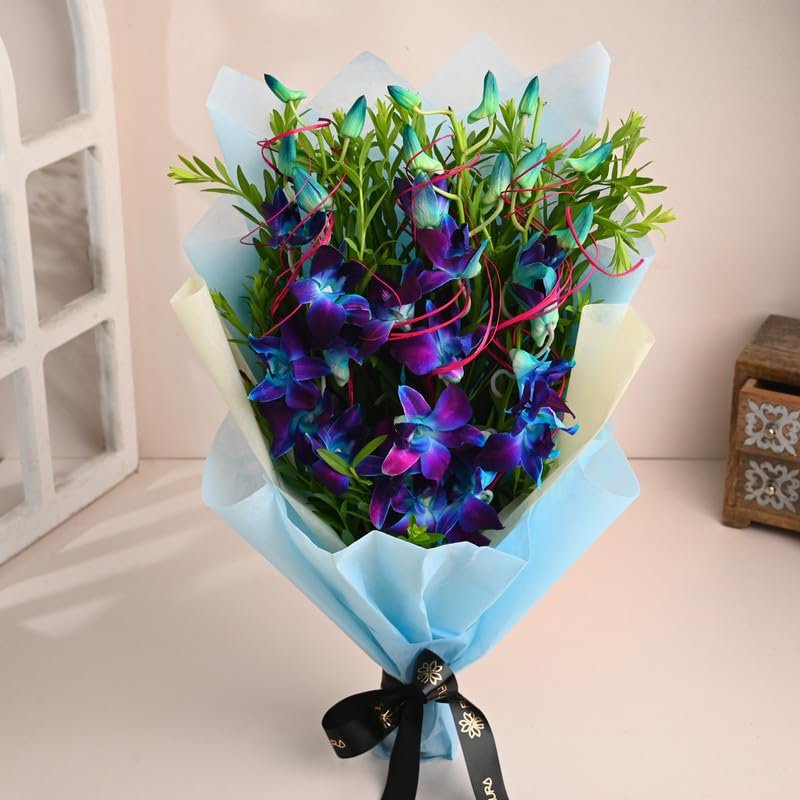 Details: FlowerAura Premium Fresh Live Flower Bouquet of 3 Blue Flowers in Designer Packing is a vibrant and elegant floral arrangement designed to express tranquility, admiration, and heartfelt emotions. This premium bouquet features 3 fresh live blue flowers, symbolizing uniqueness, loyalty, and peace, beautifully wrapped in high-quality designer packing for a stylish and sophisticated presentation. The striking blue blooms create a visually captivating and meaningful bouquet, making it an ideal choice for birthdays, anniversaries, romantic surprises, Rose Day, and Valentine’s Day celebrations. Handcrafted by skilled florists, this fresh live flower bouquet ensures premium quality, lasting freshness, and a memorable gifting experience, perfect for wife, girlfriend, fiancé, or someone truly special.