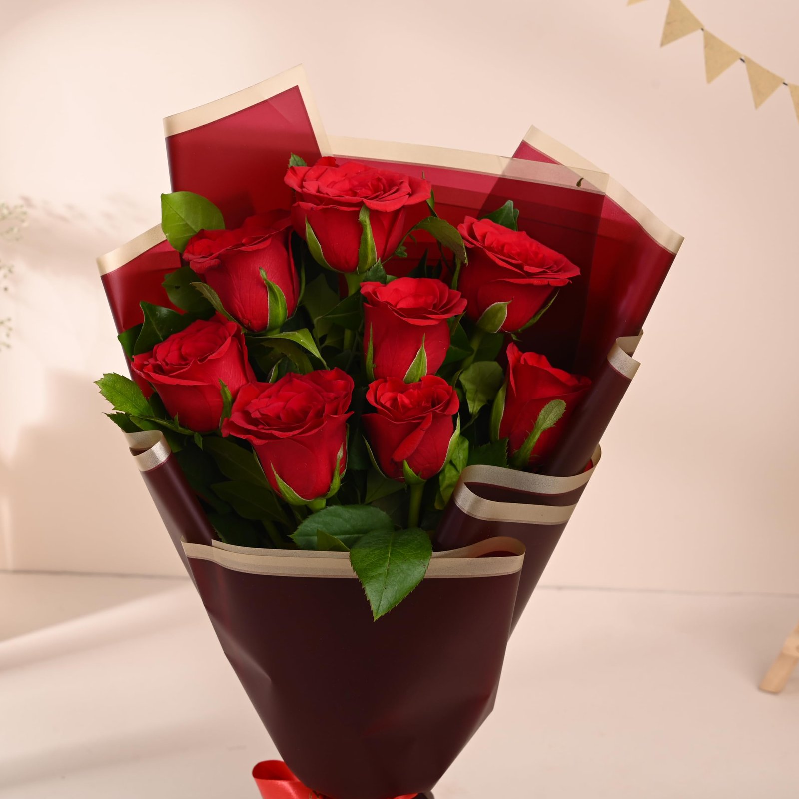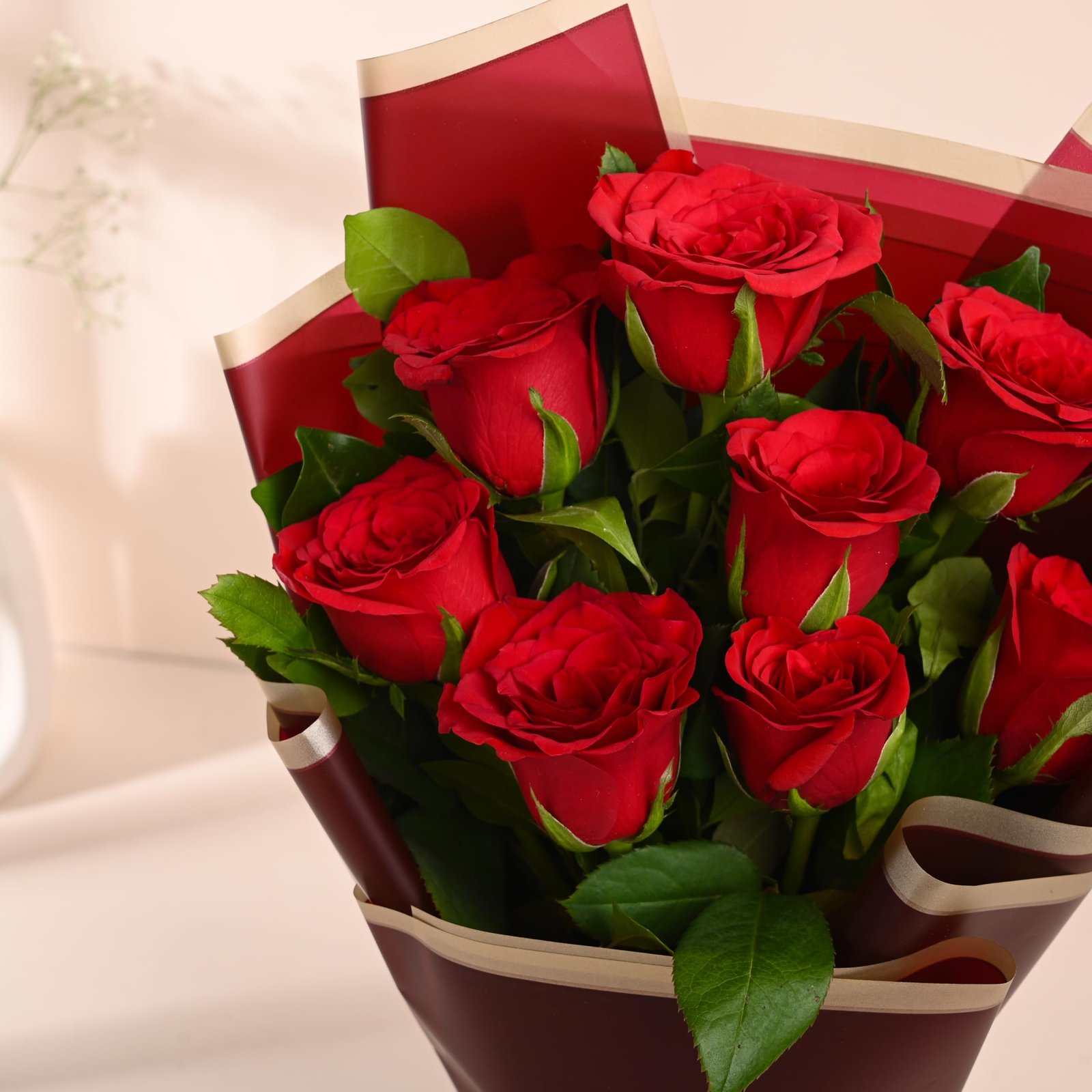 - PREMIUM RED ROSES Bouquet featuring 8 fresh red rose flowers symbolizing love passion romance and affection