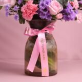 - GLASS VASE PRESENTATION Arranged in a high-quality glass vase for a sophisticated and polished floral display