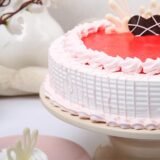- Made with natural and rich ingredients, this lip-smacking strawberry cake is a perfect delicacy to delight your beloved one’s hearts on any occasion and celebration.