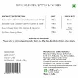 Details: A luxurious selection of compact, convenient, and travel-friendly essentials. This Gift Box Includes – Sunscreen Lotion Aloe Vera & Sandalwood 50ml, Delicate Facial Cleanser Saffron & Neem 50ml, Luxury Sugar Soap Bitter Orange & Cinnamon 70g, Luscious Lip Balm Narangi Glaze 4g
