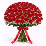 - Handmade Fresh Flowers Bunch of 100 Red Roses Hand Tied with Ribbons with Seasonal Fillers