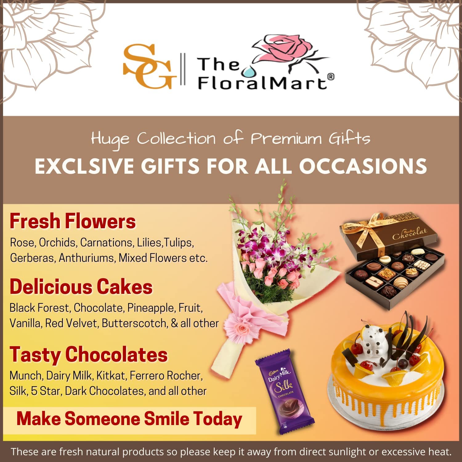 • The FloralMart has special gifts for every little to the big occasion. The unique thing about all of our gifts is that they can be personalized like you can change the flower’s color or add your personal message to your order.