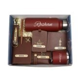 - Premium All-in-One Gift Hamper for Men: This customized leather gift combo for men includes a sleek wallet, passport cover, eyewear case, luggage tag, keychain with name and charm, and a stainless steel water bottle and mug with engraved names. Perfect for those looking for personalized gifts for men, this gift hamper for men stands out as the best choice for any special occasion.